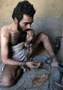 قد يعتقد البعض منكم عند رؤية الصور التالية التي نشارككم بها اليوم اعزاءنا قراء موقع "فرفش" أن الرجال المربوطين بالسلاسل المحكمة لحائط ويحصلون على فتات خبز يومياً، قد قاموا بفعل إجرامي شنيع ليستحقوا هذا العقاب. لكن هؤلاء الرجال ليسوا بمجرمين، انما هي طريقة أفغانية للعلاج النفسي وإدمان المخدرات أو لمن هم مشتبهون بأنهم متلبسون من الأرواح الشريرة أو الشياطين. ويعتقد الناس هناك بأن السجن لأربعين يوماً في مزار ميا علي بابا الموجود في جلال أباد والربط بالسلاسل مع نظام غذائي صارم من الخبز والماء سيمكن هؤلاء الرجال من التغلب على شياطينهم.
